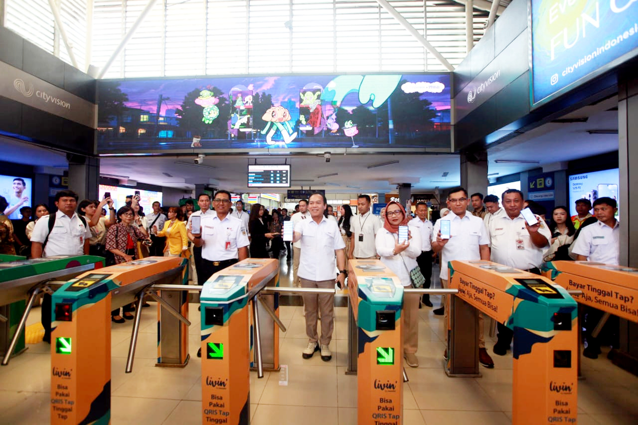(Kanan–kiri) Executive Vice President of Rail Transit Jabodebek Mochamad Purnomosidi, Direktur Network & Retail Funding Bank Mandiri Jan Winston Tambunan, Direktur Departemen Kebijakan Sistem Pembayaran Bank Indonesia Fitria Irmi Triwati, dan Direktur Utama PT Kereta Commuter Indonesia Asdo Artriviyanto pada peresmian implementasi QRIS Tap di transportasi publik di Jakarta, Rabu (19/11). Fitur QRIS Tap memungkinkan pengguna cukup menempelkan ponsel di gate menggunakan teknologi NFC tanpa top-up dan tanpa pemindaian QR manual. Integrasi ini memperkuat kenyamanan mobilitas masyarakat serta keandalan sistem pembayaran digital di ruang publik. Melalui Livin’ by Mandiri, pengguna Android ber-NFC dapat melakukan pembelian tiket layanan KCI, KRL Solo-Yogyakarta, dan LRT Jabodebek dengan lebih praktis. Kolaborasi ini diharapkan meningkatkan kemudahan transaksi nasabah, di mana hingga September 2025 frekuensi transaksi QRIS Livin’ telah mencapai 878 juta dengan nilai Rp123,5 triliun, tumbuh 103 persen secara tahunan