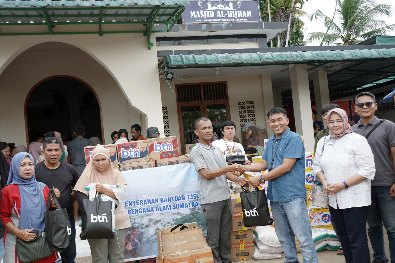 Karyawan BTN menyalurkan bantuan ke Posko Bantuan di Lubuk Minturun, Padang, Minggu (30/11). Bantuan yang diberikan berupa sembako dan barang pokok lainnya yang diharapkan dapat memenuhi kebutuhan harian para korban terdampak banjir di Padang. Selain terjun ke lapangan, BTN juga menyalurkan bantuan melalui Universitas Andalas, Universitas Negeri Padang, Pemerintah Kota Padang, dan Pemerintah Provinsi Sumatera Barat yang memiliki akses langsung ke para korban. Aksi tanggap bencana ini sejalan dengan arahan Danantara untuk bergerak cepat membantu korban banjir di Sumatera