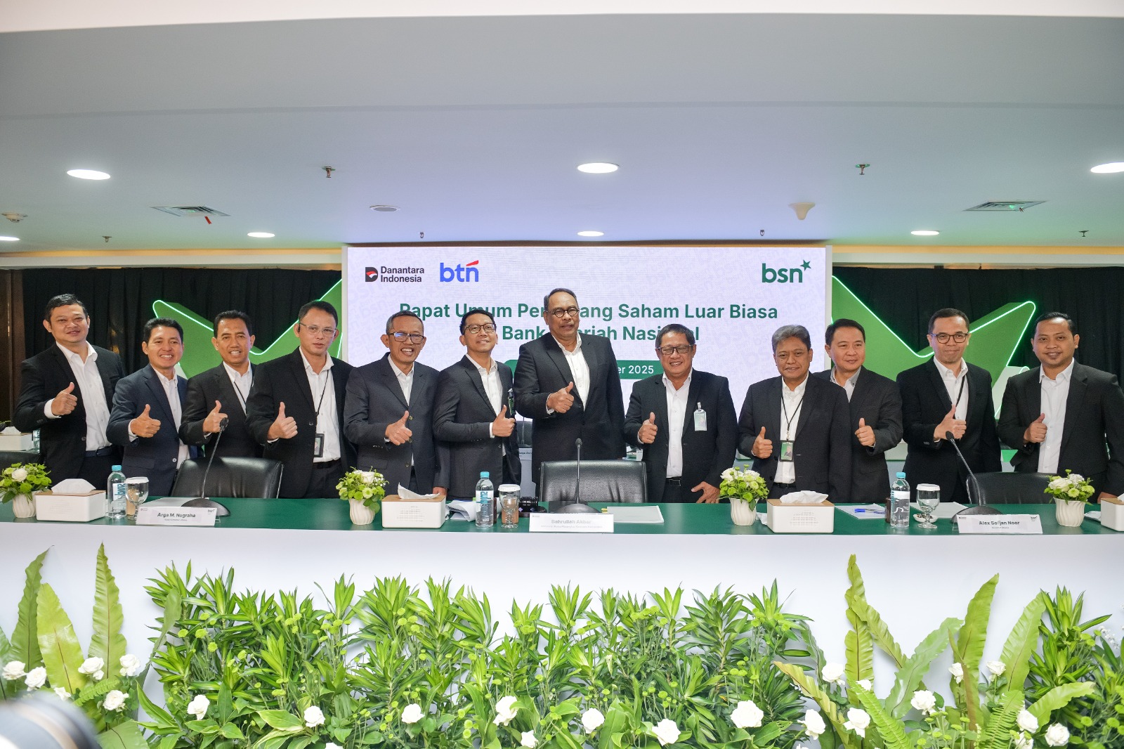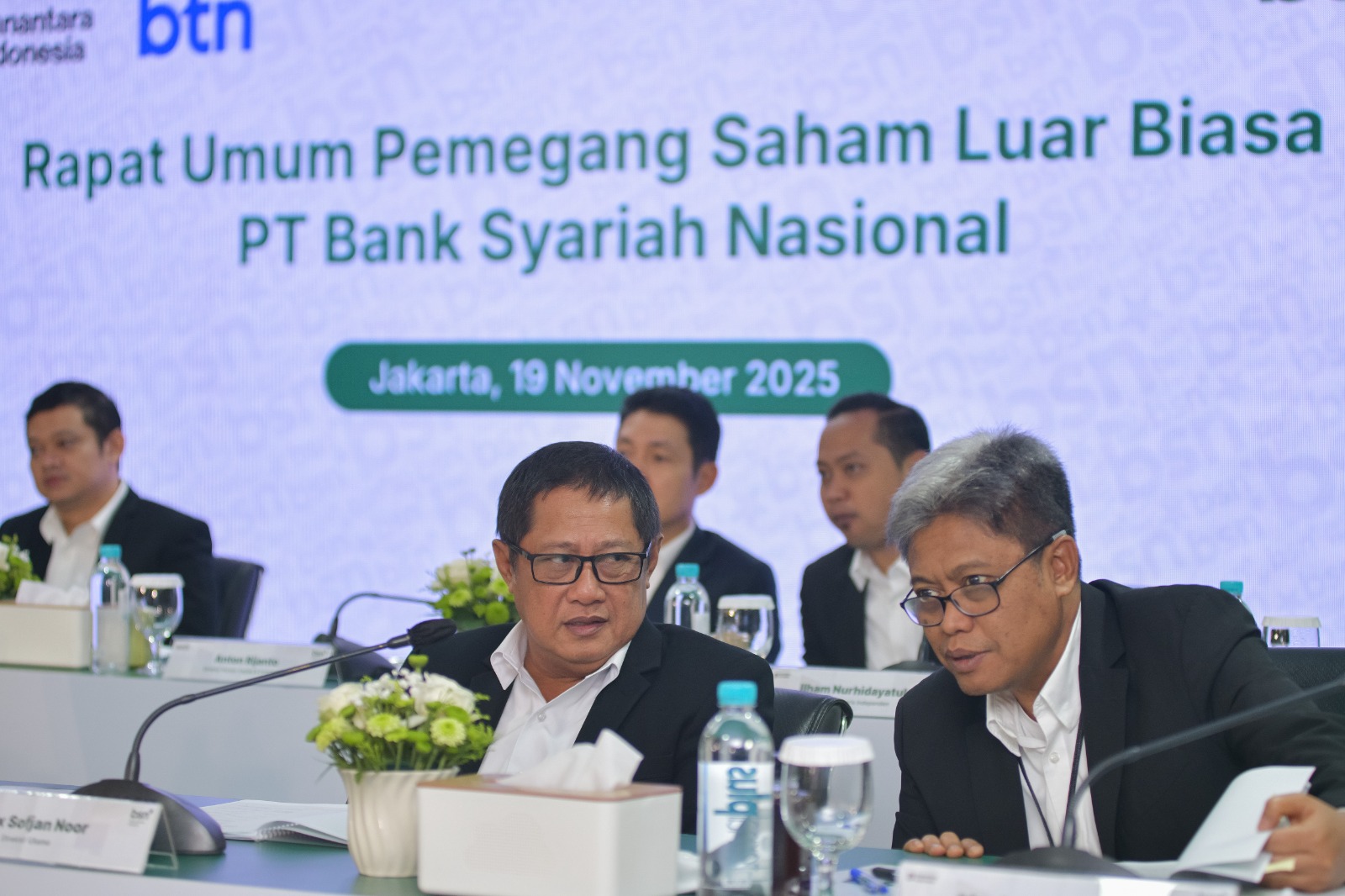 RUPSLB Bank Syariah Nasional (BSN) yang dipimpin oleh Komisaris Utama merangkap sebagai komisaris independent BSN Bahrullah Akbar didampingi oleh jajaran komisaris, Direktur Utama BSN Alex Sofjan Noor, Wakil Direktur Utama BSN Arga M. Nugraha beserta jajaran Direksi BSN lainnya menyetujui 4 mata acara yang menjadi agenda dalam RUPSLB, ya g diselenggarakan di Jakarta, Rabu (19/11). Setelah resmi menerima limpahan aset dan liability Unit Usaha Syariah (UUS) BTN, Bank Syariah Nasional (BSN) menyatakan kesiapannya untuk menjadi katalitas penguat pangsa pasar syariah di Indonesia. BSN pasca spin off beraset sekitar Rp71 Triliun juga siap mengejar pertumbuhan aset perseroan diatas Rp100 Triliun pada 2 tahun ke depan. Kesiapan BSN yang saat ini masuk dalam kelompok Bank Syariah dengan aset terbesar kedua di Indonesia juga disampaikan pada RUPSLB tersebut