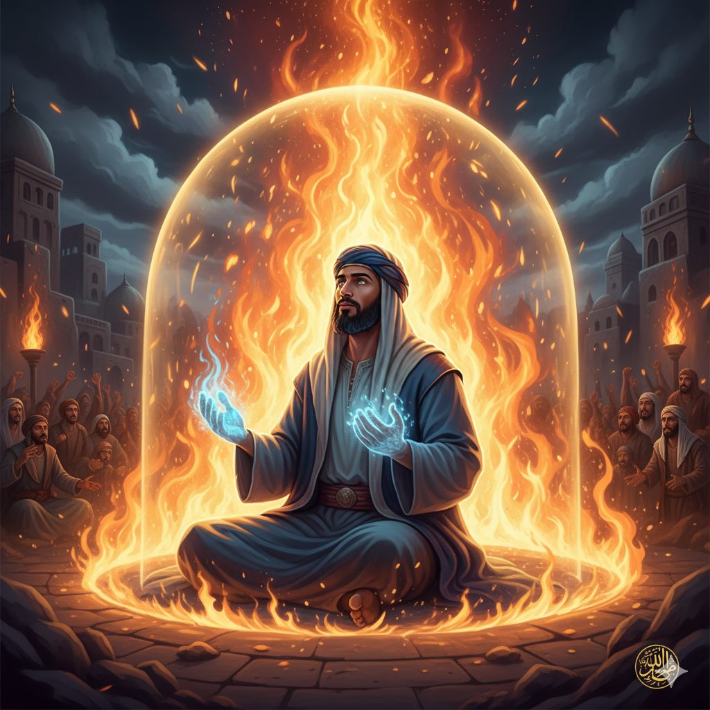 Kayu bakar pun dikumpulkan dalam jumlah yang sangat besar, dan api menyala dengan dahsyat. Ketika Nabi Ibrahim dilemparkan ke tengah kobaran api, beliau tidak panik, melainkan memanjatkan doa kepada Allah SWT.